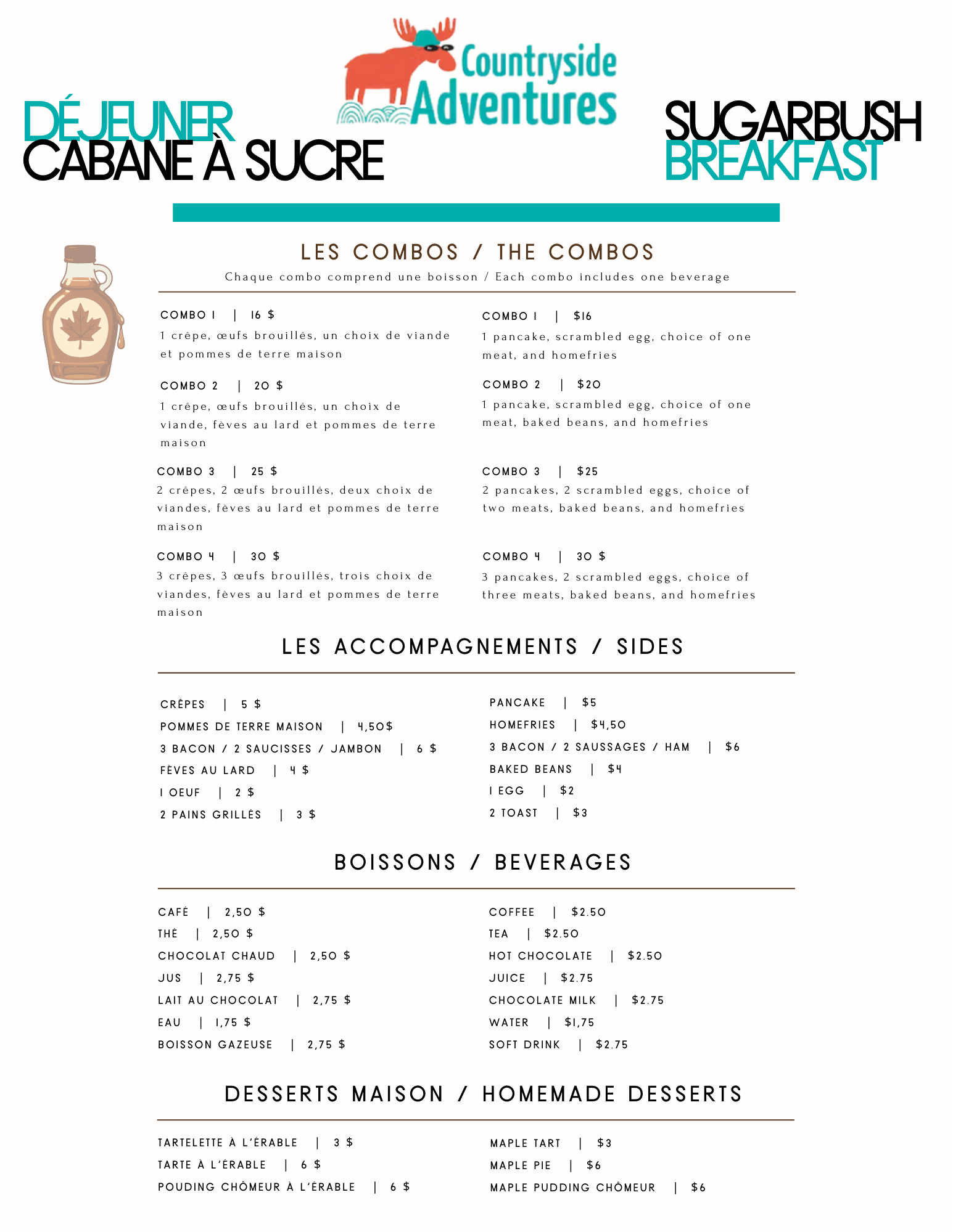 As you know Countryside Adventures has some of the best tasting Maple Syrup around! This year (2026) we have decided to expand our Cabane a Sucre to include a delicious pancake breakfast.